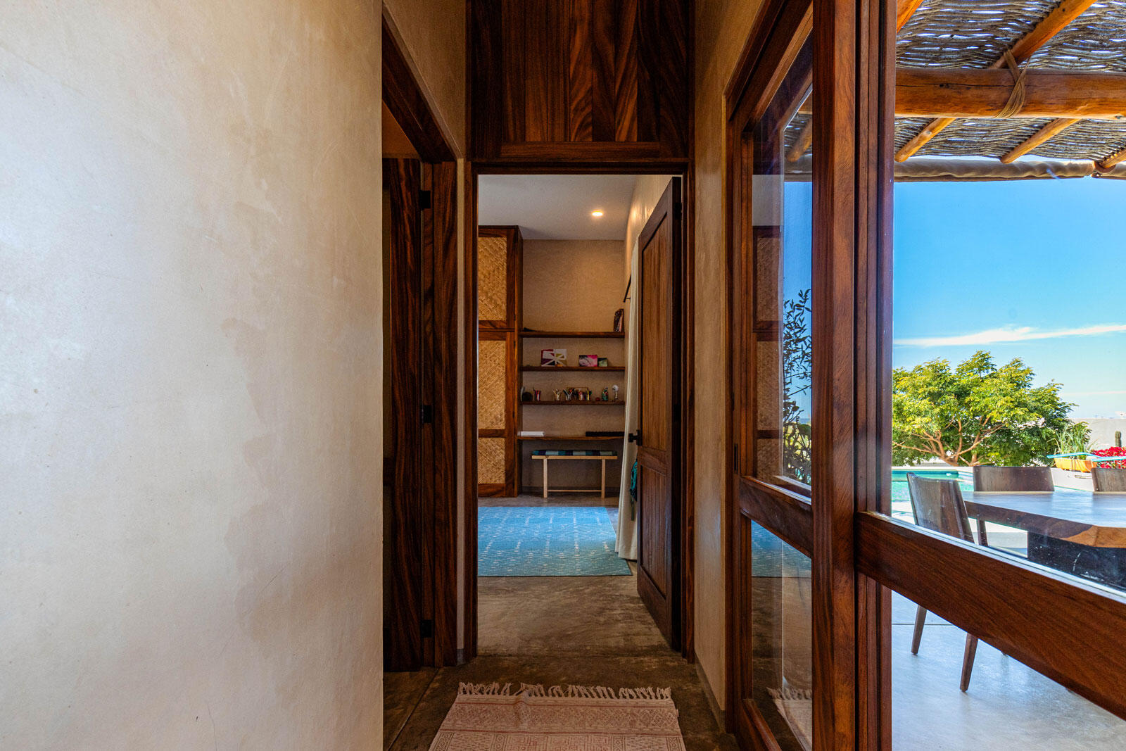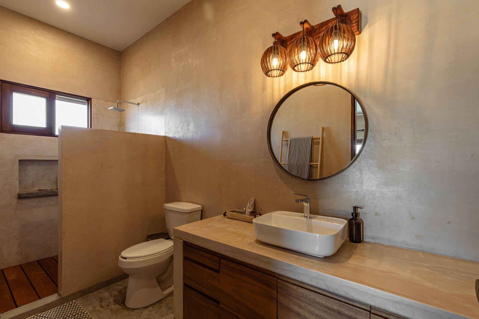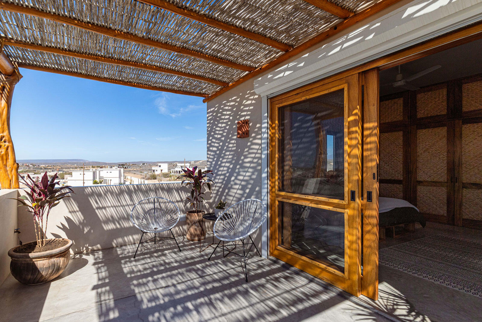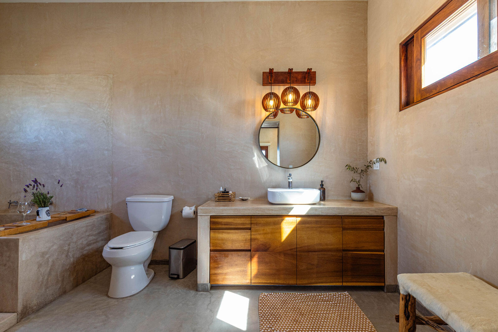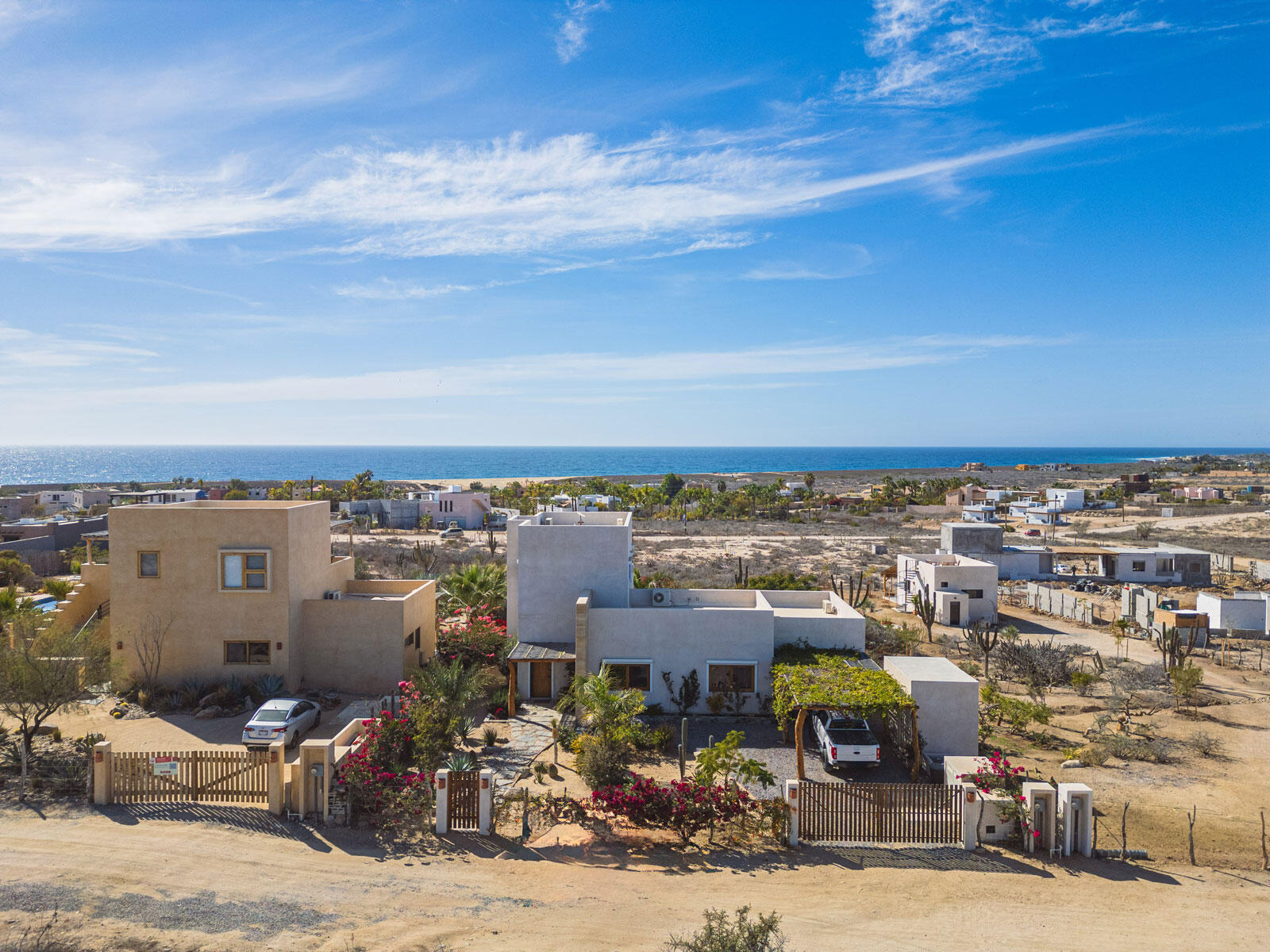 A luxury retreat built by Casa Baja, fully furnished by Casa de Todos, and ready to move in or rent! This 3-bed, 3.5-bath home features soaring wood-beamed ceilings, custom parota finishes, and a striking rammed earth accent wall. Designed for seamless indoor-outdoor living, it boasts a spacious patio, phantom screens, hurricane shutters, Bose speakers, and lush landscaping with fruit trees. The extra-large saltwater pool, oversized hot tub (electric & propane heat), and outdoor shower complete the oasis. A generator, whole-house water filtration, covered parking, and a secure bodega with a second fridge offer convenience. Option to purchase with adjacent Casita Serenidad for a rare 3,200m compound.