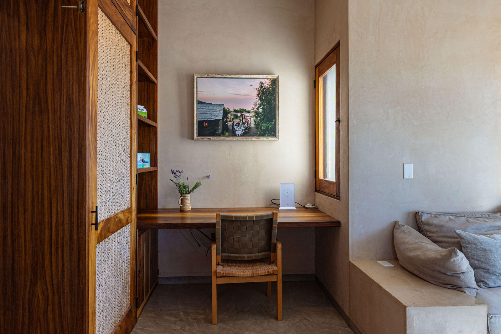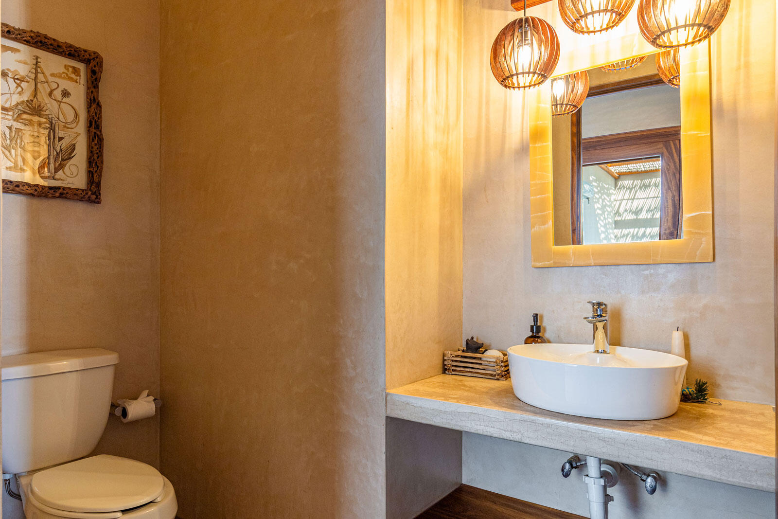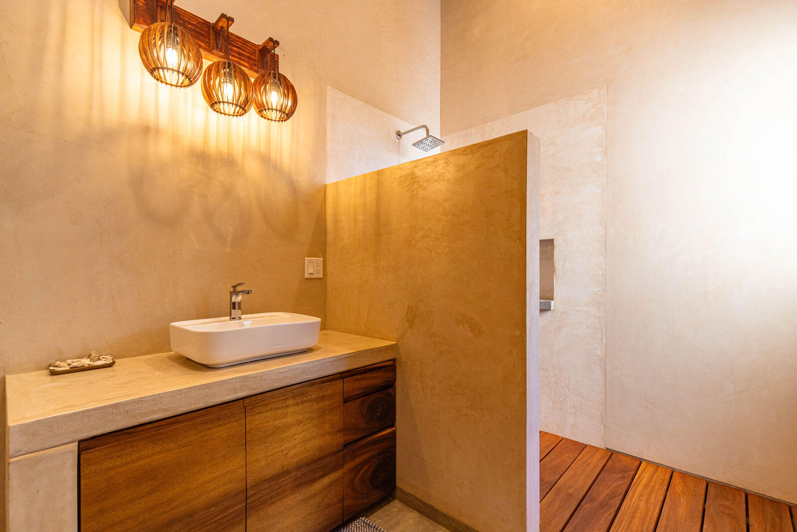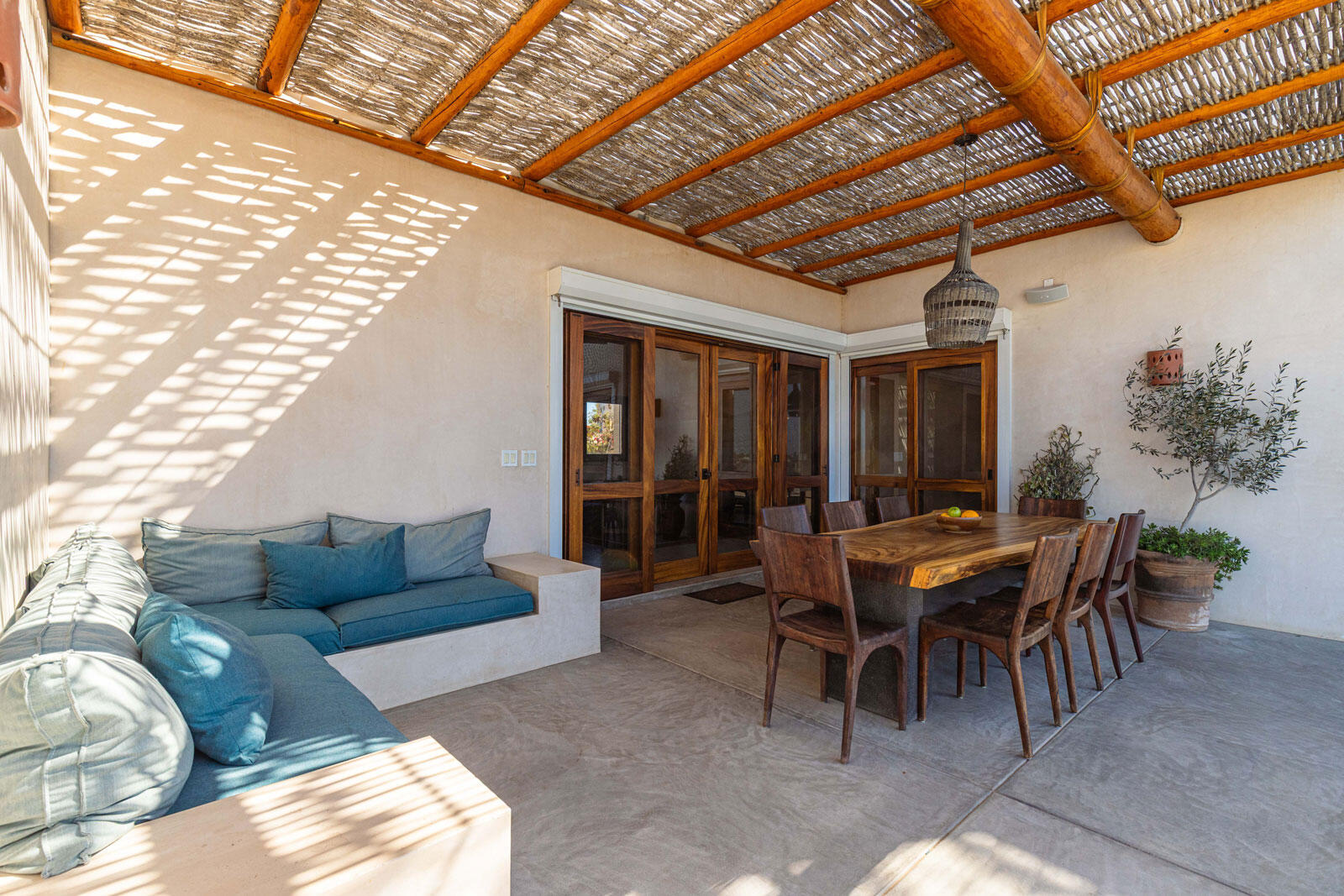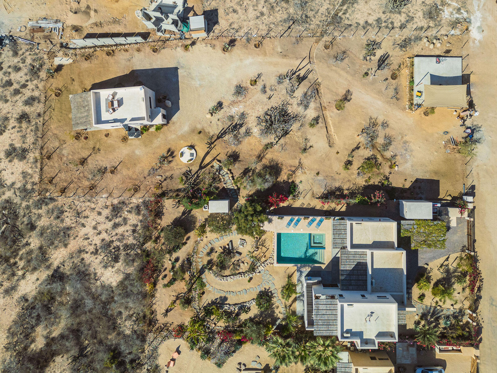 A luxury retreat built by Casa Baja, fully furnished by Casa de Todos, and ready to move in or rent! This 3-bed, 3.5-bath home features soaring wood-beamed ceilings, custom parota finishes, and a striking rammed earth accent wall. Designed for seamless indoor-outdoor living, it boasts a spacious patio, phantom screens, hurricane shutters, Bose speakers, and lush landscaping with fruit trees. The extra-large saltwater pool, oversized hot tub (electric & propane heat), and outdoor shower complete the oasis. A generator, whole-house water filtration, covered parking, and a secure bodega with a second fridge offer convenience. Option to purchase with adjacent Casita Serenidad for a rare 3,200m compound.