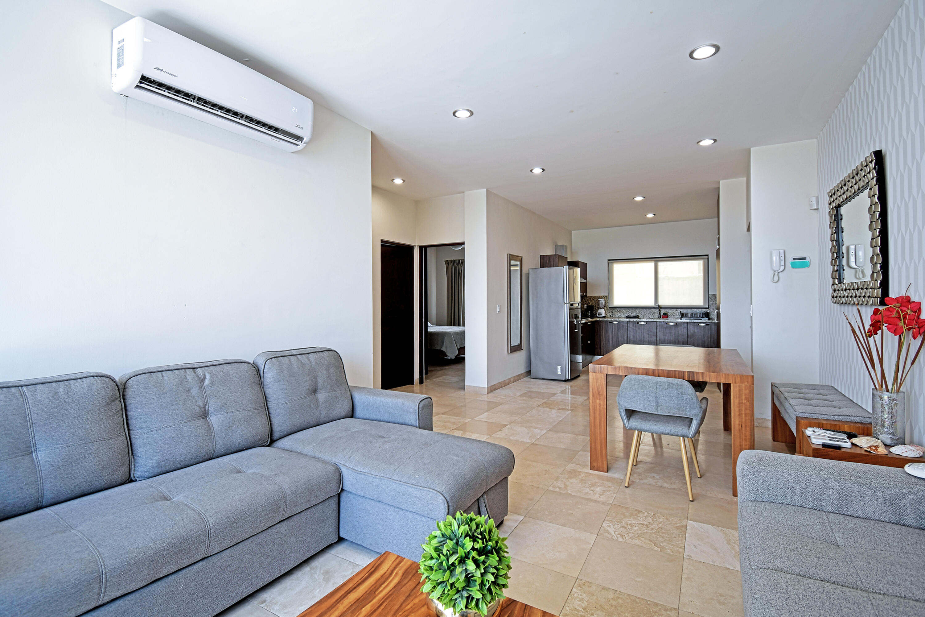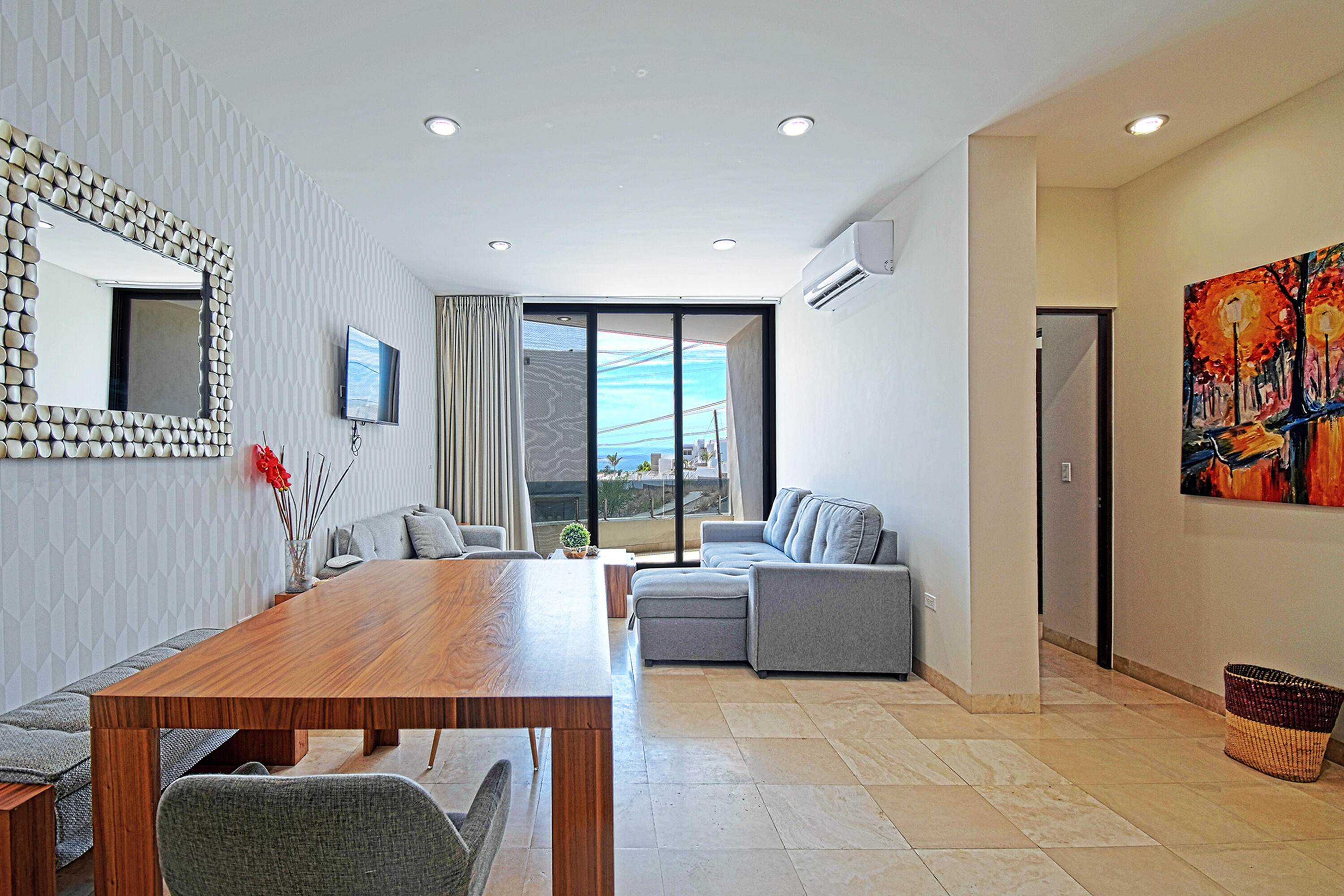 Precio en pesos $4,150,0000 MX Pesos.Located in the growing and sought-after Colinas del Sol neighborhood, just a few blocks uphill from the Malecon, offering easy access to the boardwalk, restaurants, and the water’s edge, the condo is fully furnished and move-in ready, boasting tasteful contemporary decor and thoughtful layout for both living comfort and rental flexibility .With 2 bedrooms and 2 full baths, it spans round about 1,030 sq ft (~96 m) on a single level within a low-rise building of only eight units. Interior Features & FinishesTravertine marble floors throughout the living and bedrooms. Fully equipped kitchen with cooktop, microwave, refrigerator, and modern cabinetry.Click More for details….