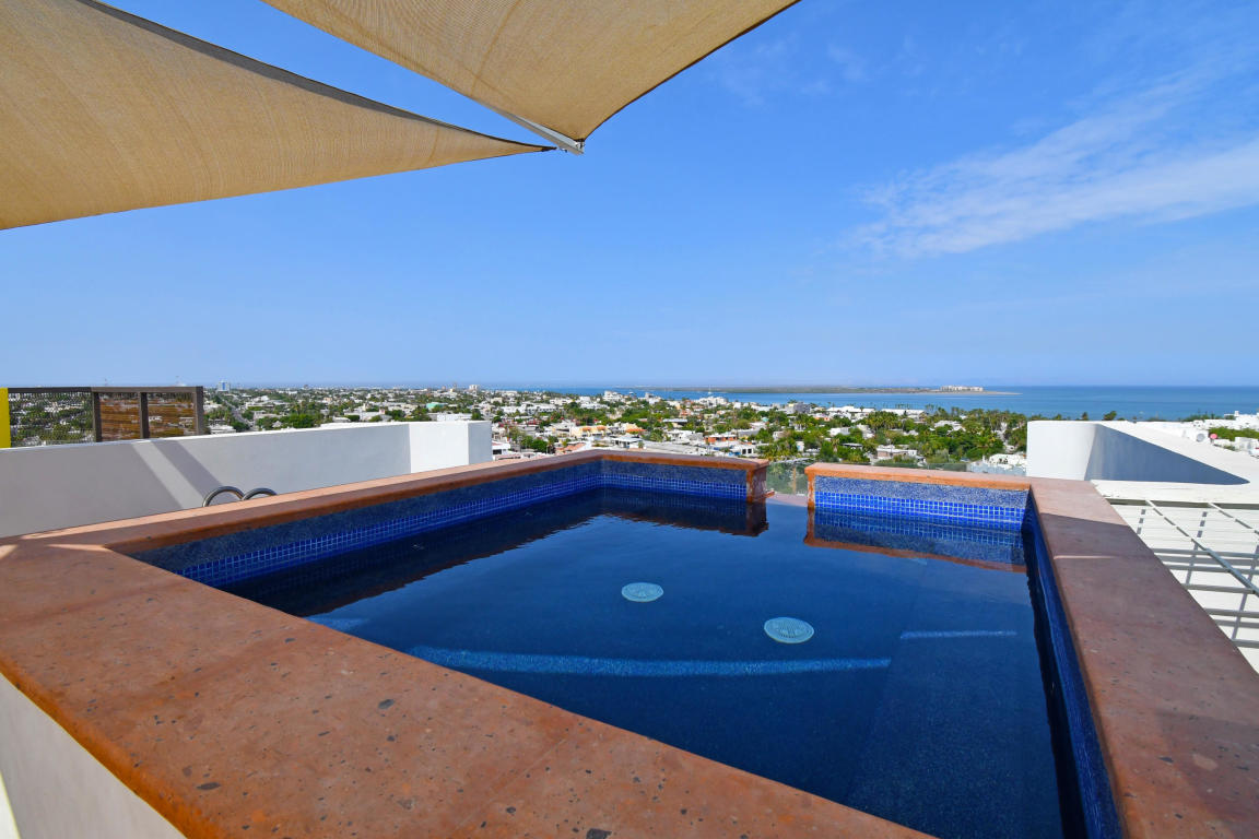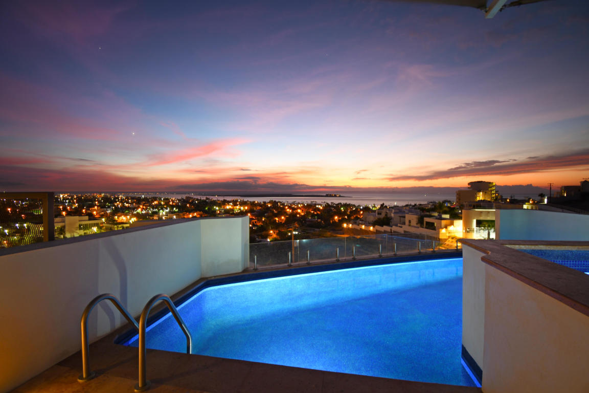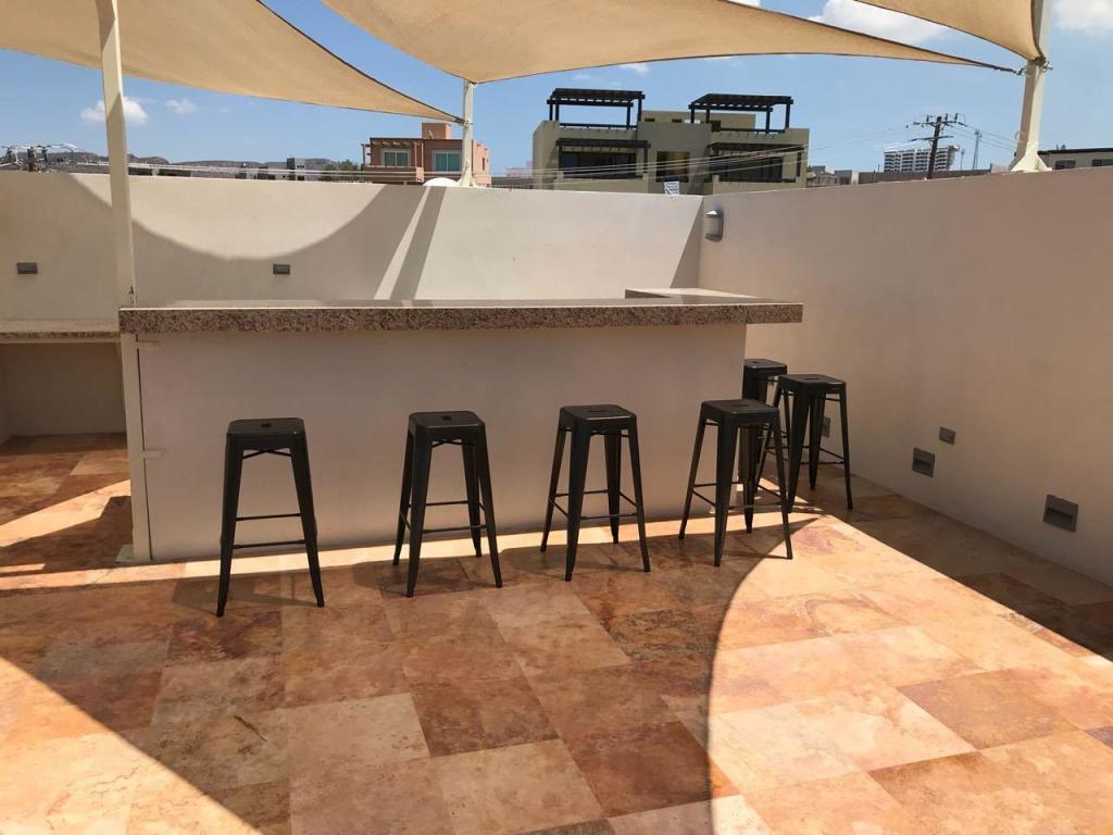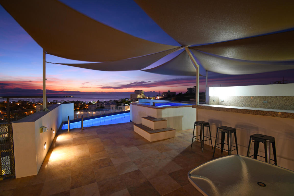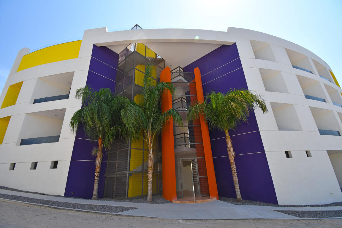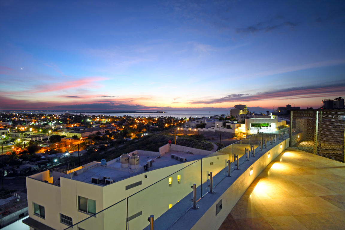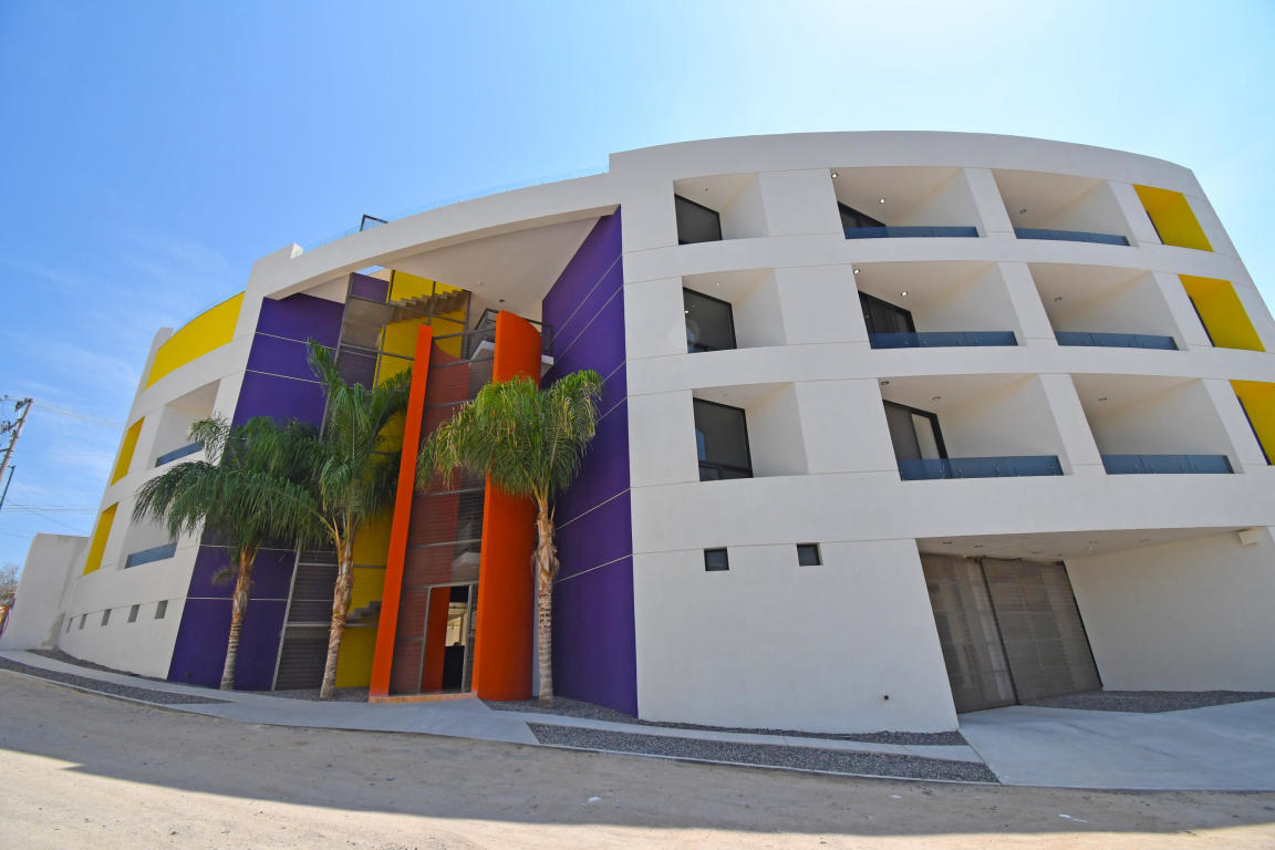 Four story building with 8 one and two bedrooms condominiums. Located in one of the most desirable and growing areas of La Paz, very near to the malecon with partial views to the ocean and great city views. Each condominium has a storage room and one parking. There are common bathrooms in the 3rd floor. A very nice roof terraza with pool and jacuzzi and bbq area in located in the fourth floor. This condominium has marble in all floors and shower area and granite in the kitchen countertops. Kitchen cabinets and closets are included.