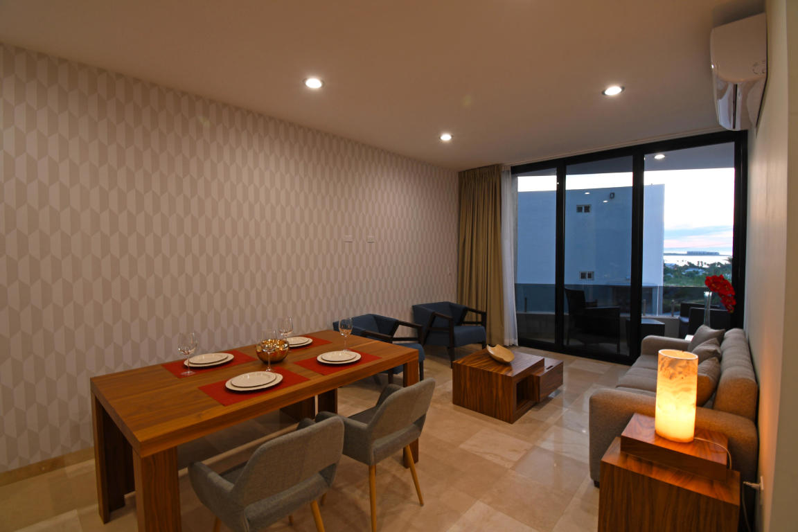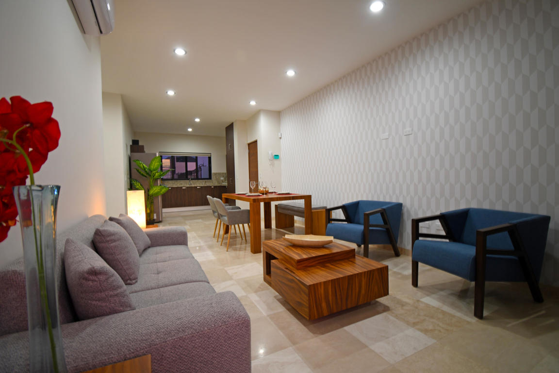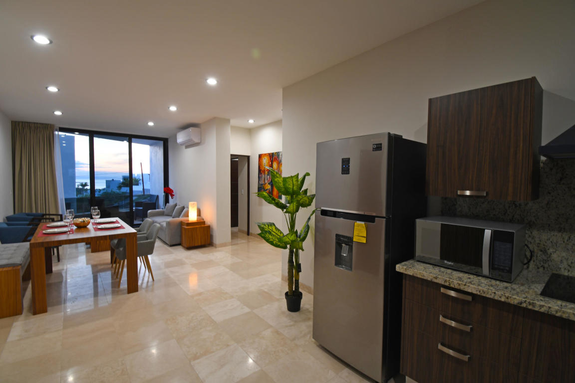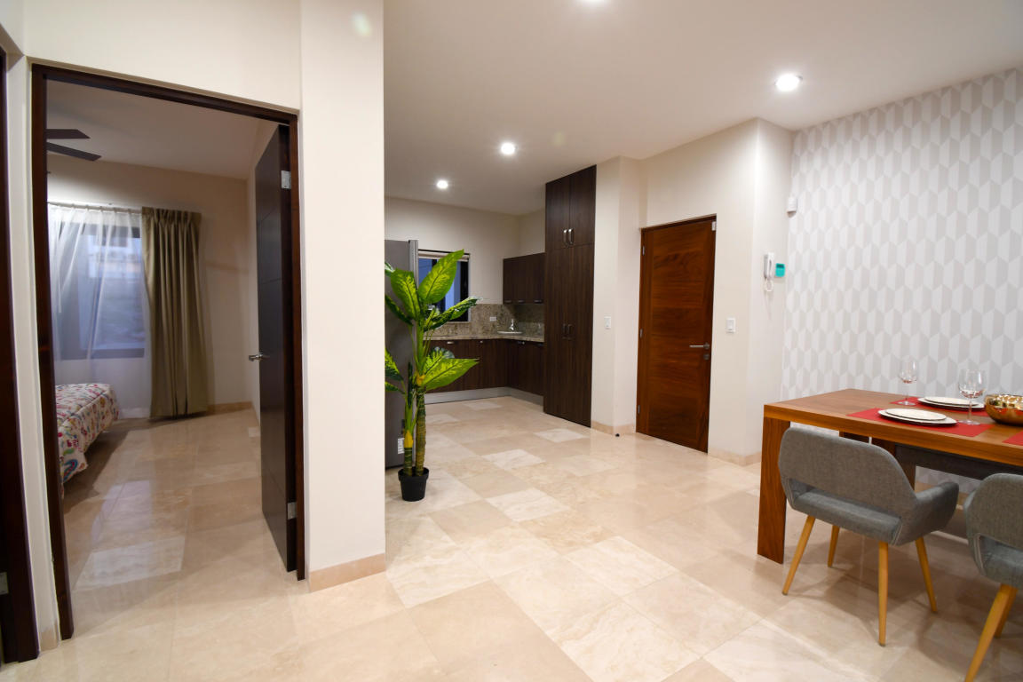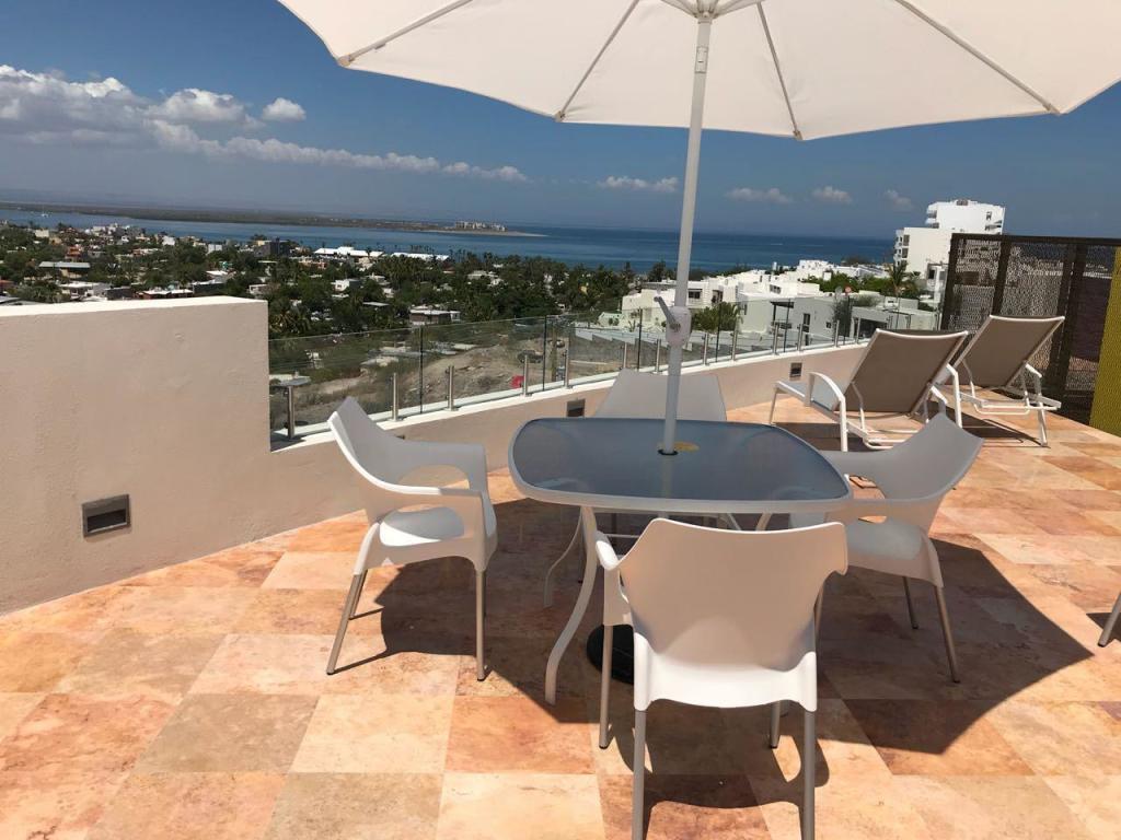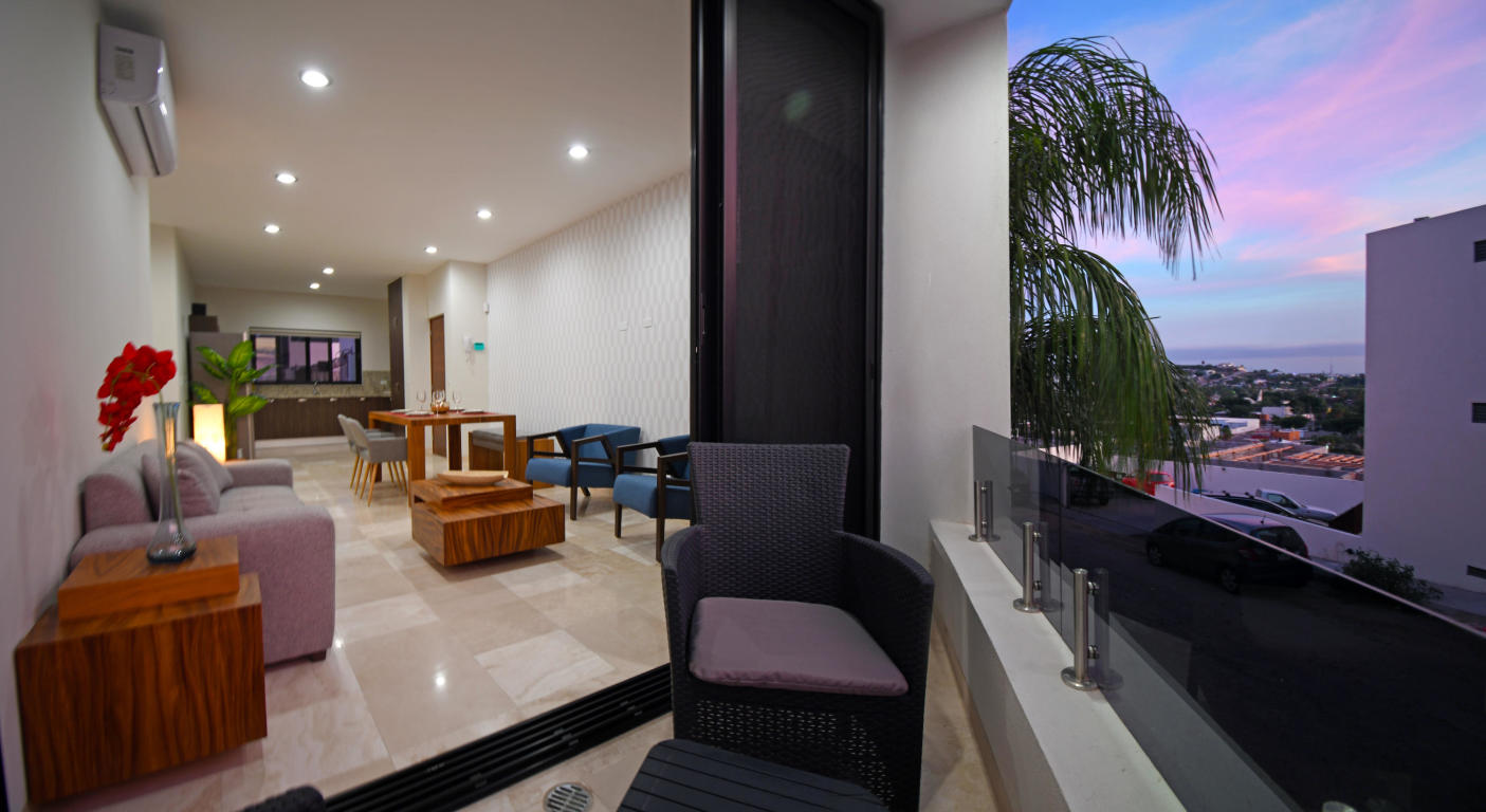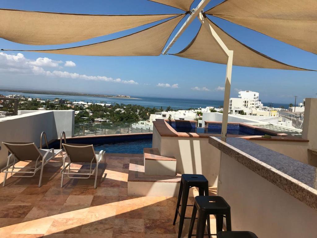 Four story building with 8 one and two bedrooms condominiums. Located in one of the most desirable and growing areas of La Paz, very near to the malecon with partial views to the ocean and great city views. Each condominium has a storage room and one parking. There are common bathrooms in the 3rd floor. A very nice roof terraza with pool and jacuzzi and bbq area in located in the fourth floor. This condominium has marble in all floors and shower area and granite in the kitchen countertops. Kitchen cabinets and closets are included.