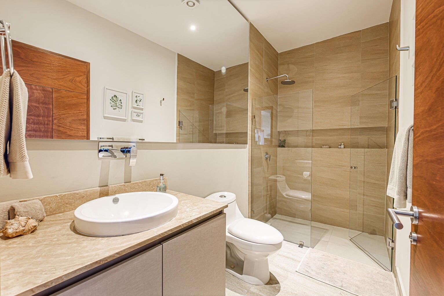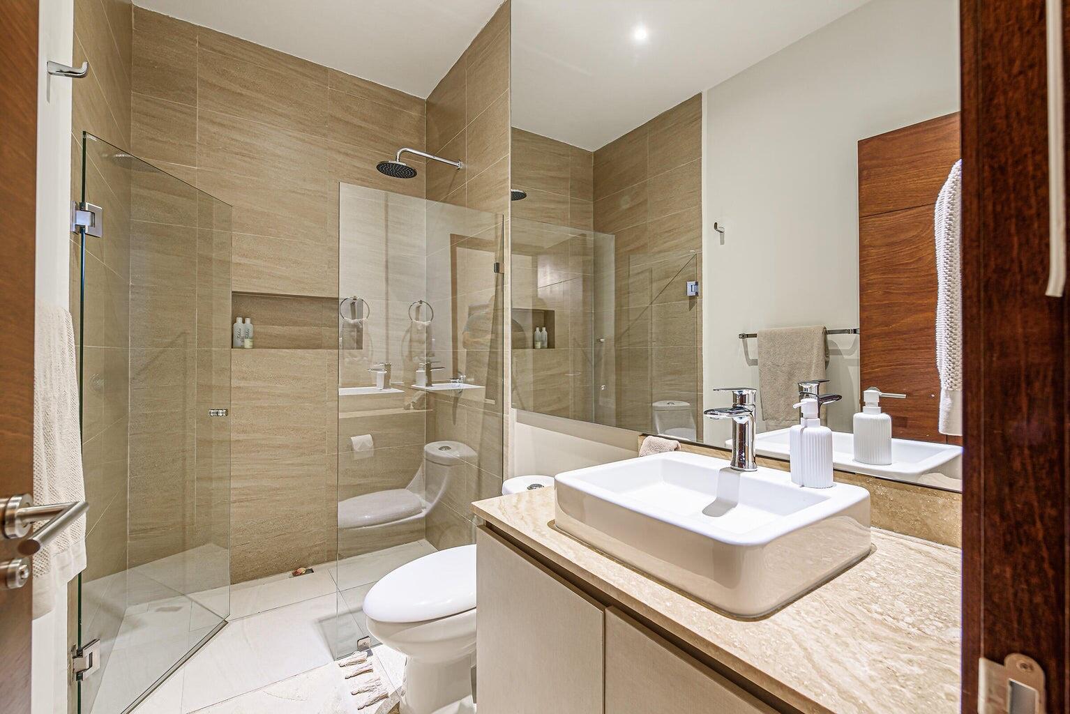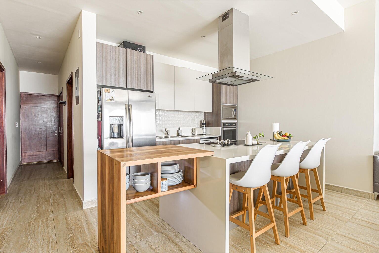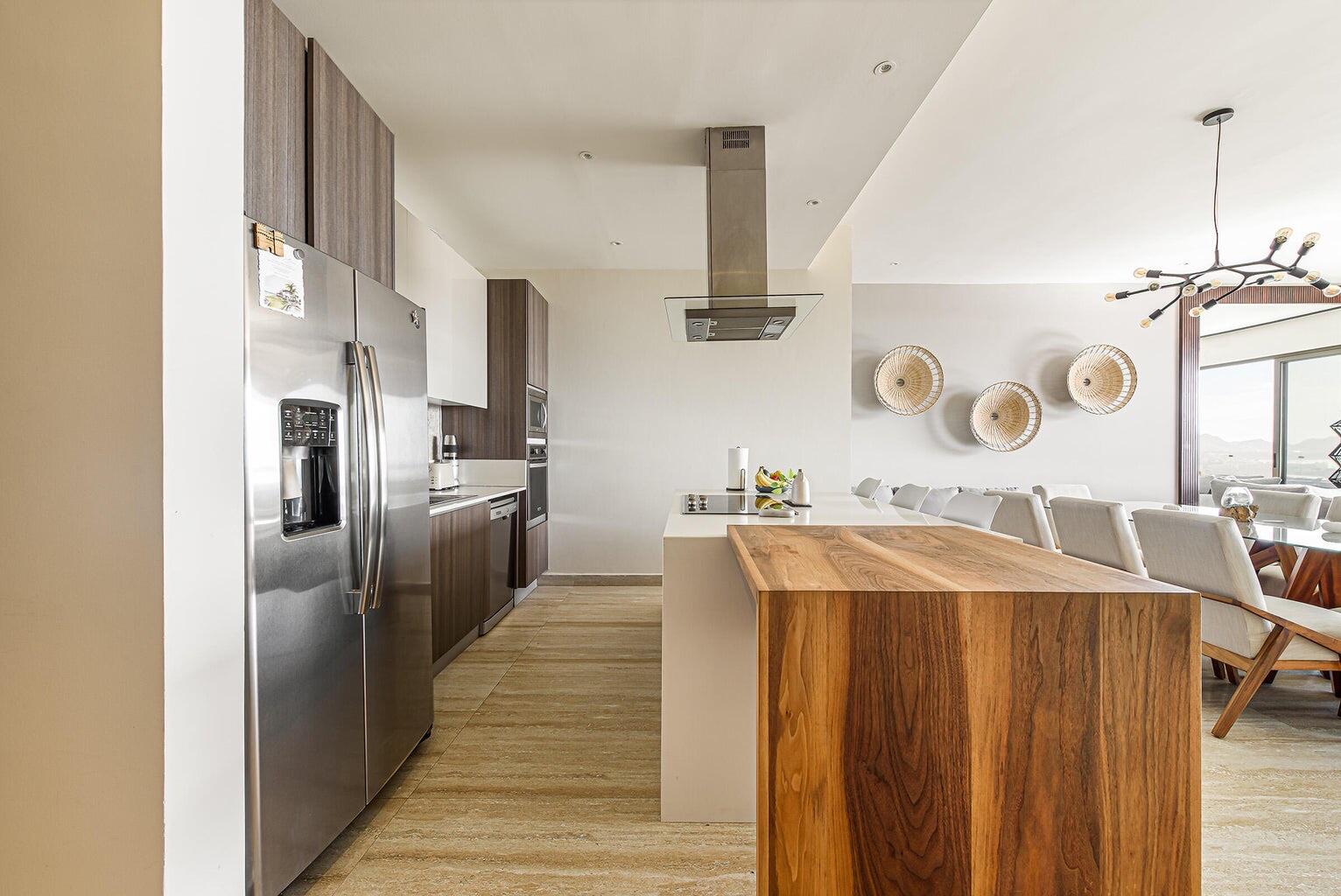 Enjoy stunning ocean views of the Sea of Cortez and Land’s End from this luxury 3-bedroom, 3-bath condo featuring high ceilings and a modern open-concept design. This professionally decorated, turnkey residence is ideally located next to Costco in Vista Vela I. Bright living and dining areas open through floor-to-ceiling sliding doors to a spacious terrace perfect for relaxing or entertaining. The primary suite offers ocean views, a walk-in closet, double vanities, and an ensuite bath. Guest bedrooms include one queen and two twins convertible to a king, both with large closets and ensuite bathrooms. Very private unit and one of the few that includes two covered parking spaces.