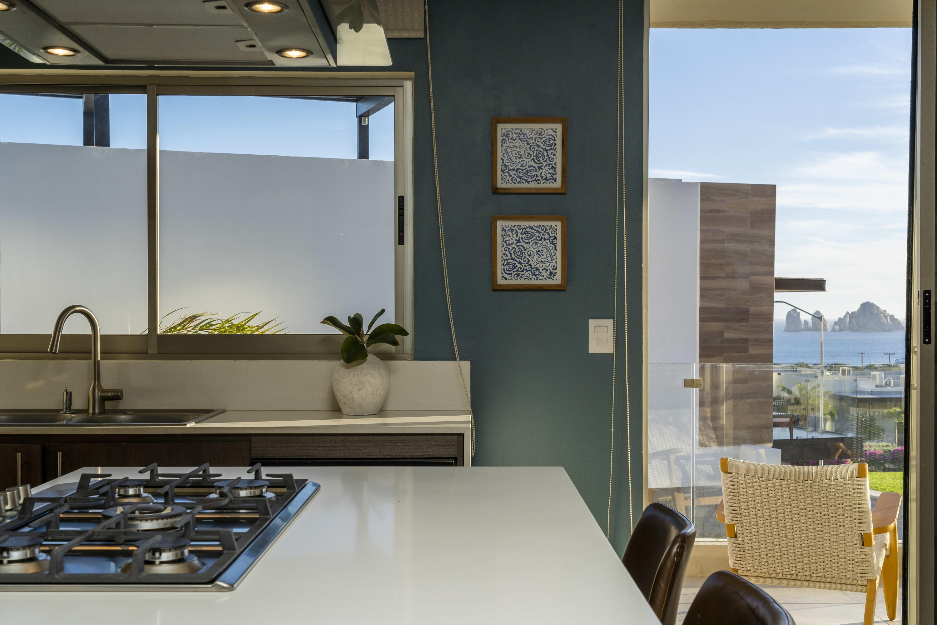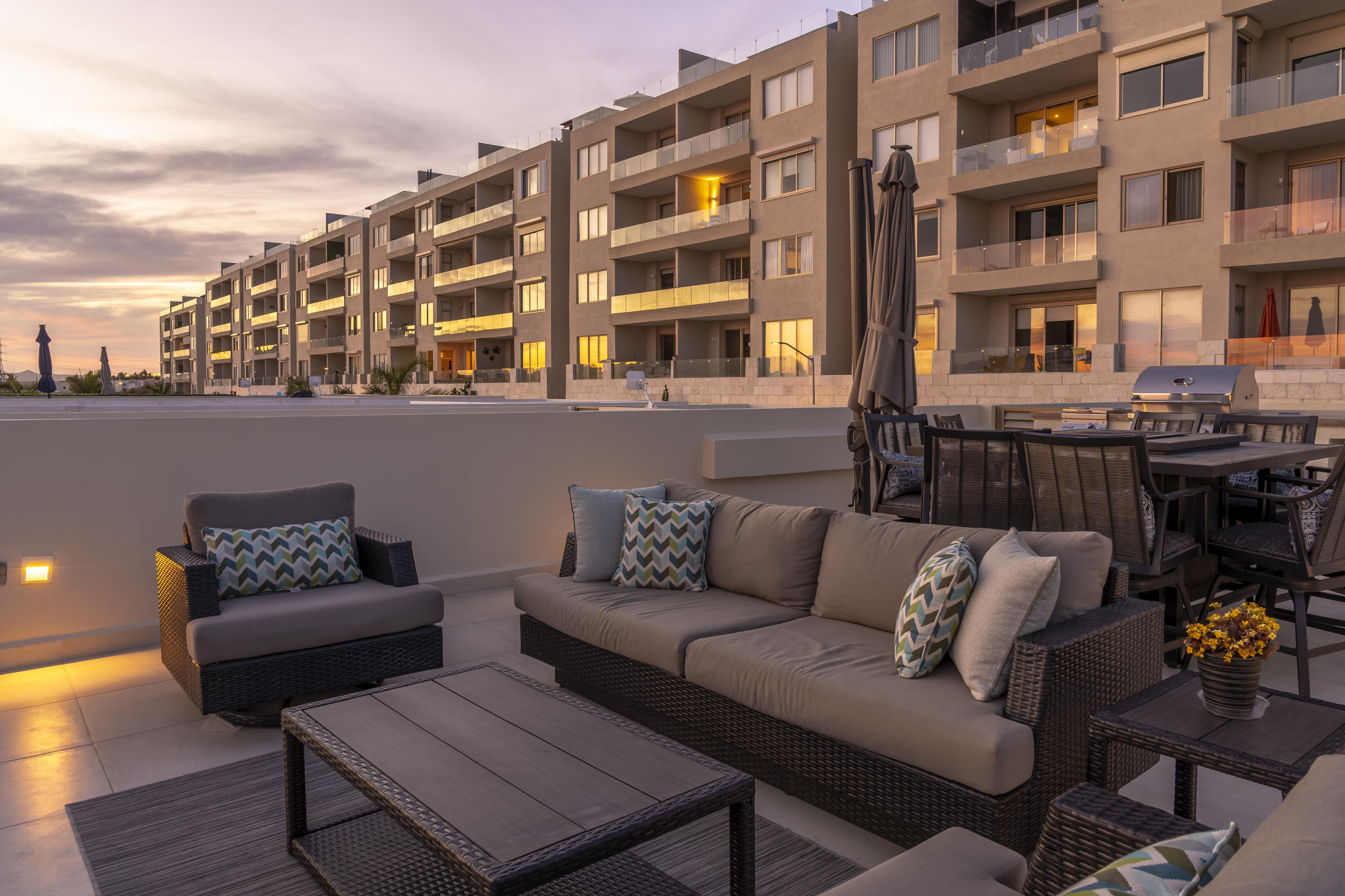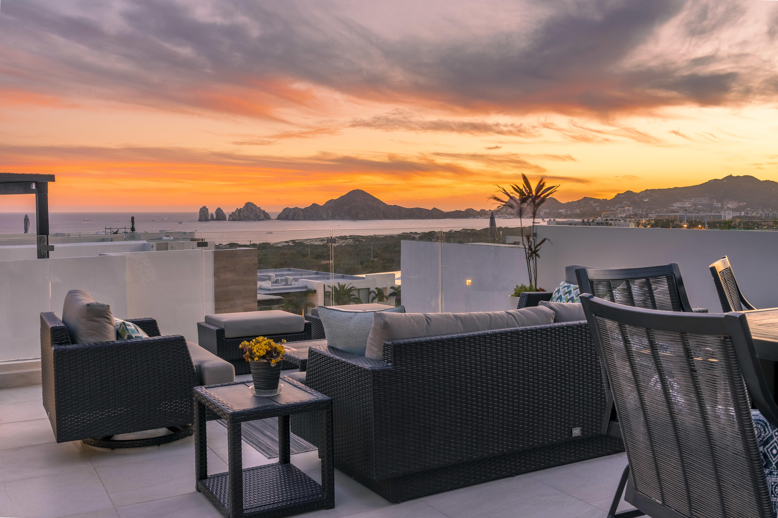 Offered aggressively, this 3BD, 3.5BA fully furnished/turnkey home at the end of the cul-de-sac on the top street of homes, achieves the most commanding views for any villa within this development, hands down! This unique/rare floor plan offers a roof top deck w/ admiring views of ”Lands End”, customized roof top ”ELITE” built in BBQ station, entire house water-filtration system, hurricane protection on windows. Solid front & side storage door (upgrade). Also plumbed for a 4th bath. The kitchen, living & entertaining area as you walk in from the front door allow single floor entertaining w/ a 1/2 BA, terrace & views. Bottom floor hosts 3BD, 3BA so all guests are comfortable w/ ensuite bathrooms & in addition, access to multiple additional terraces. Common areas: Club House, Gym & Pool.