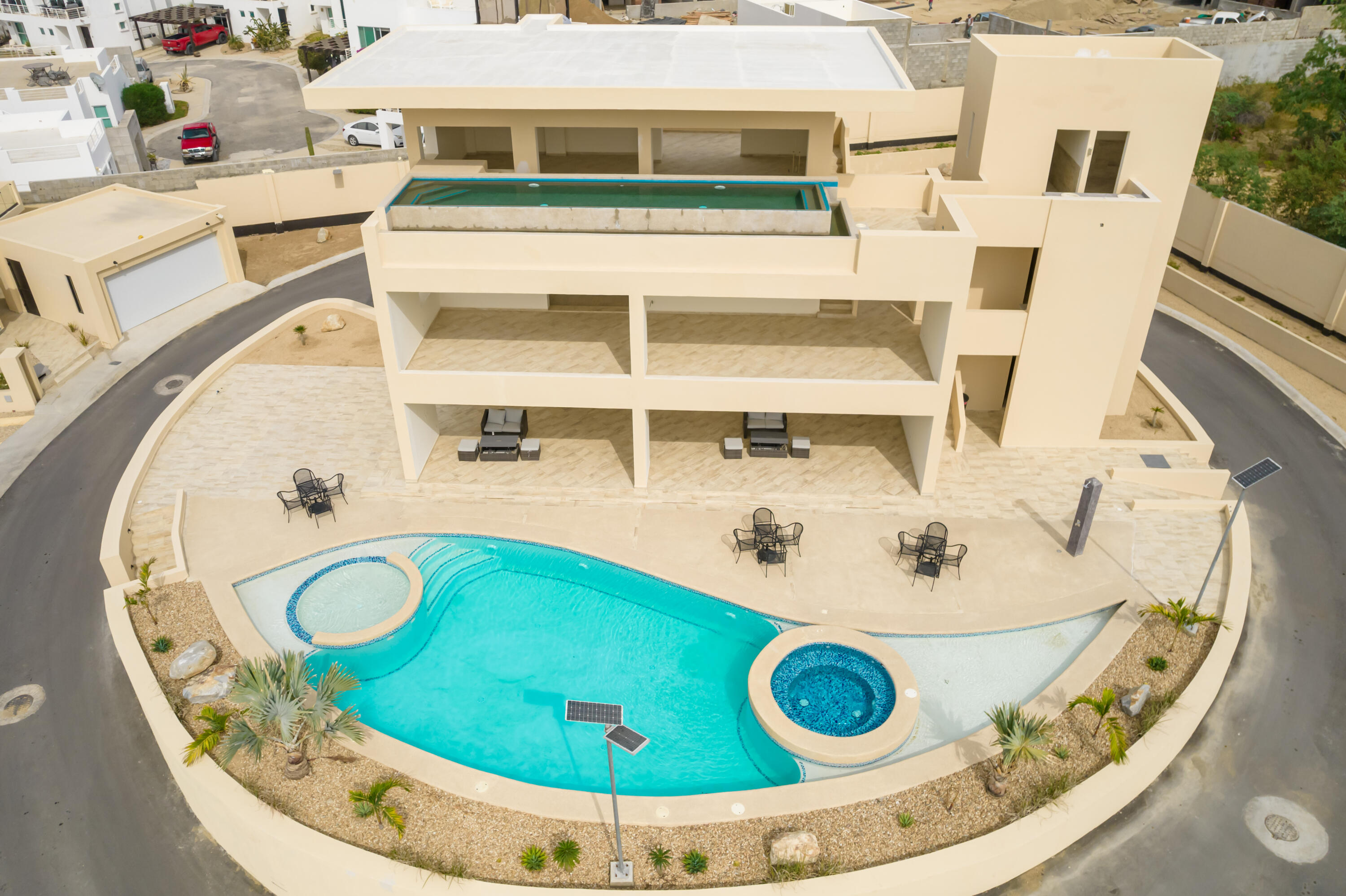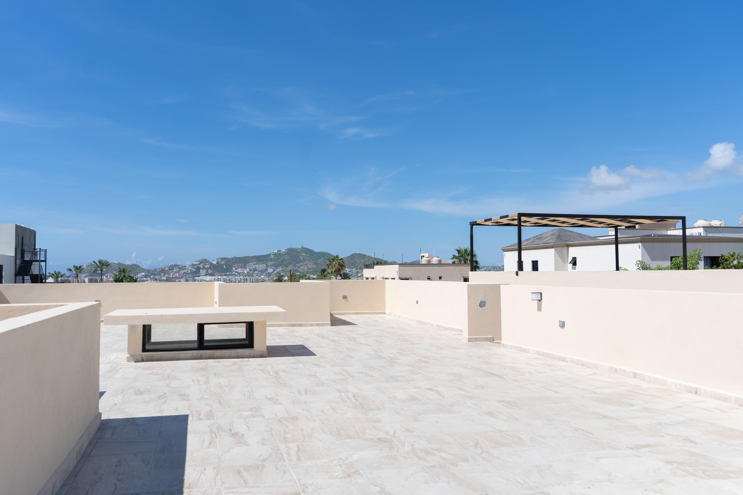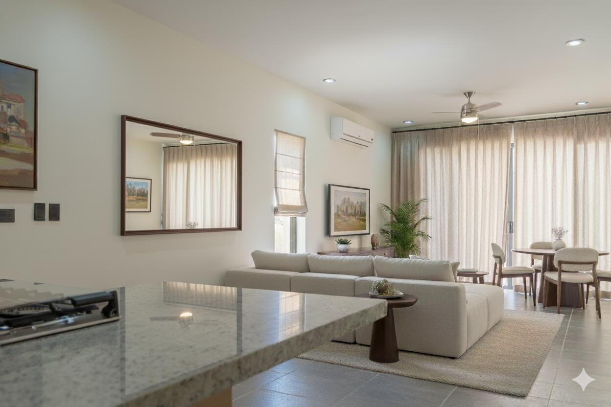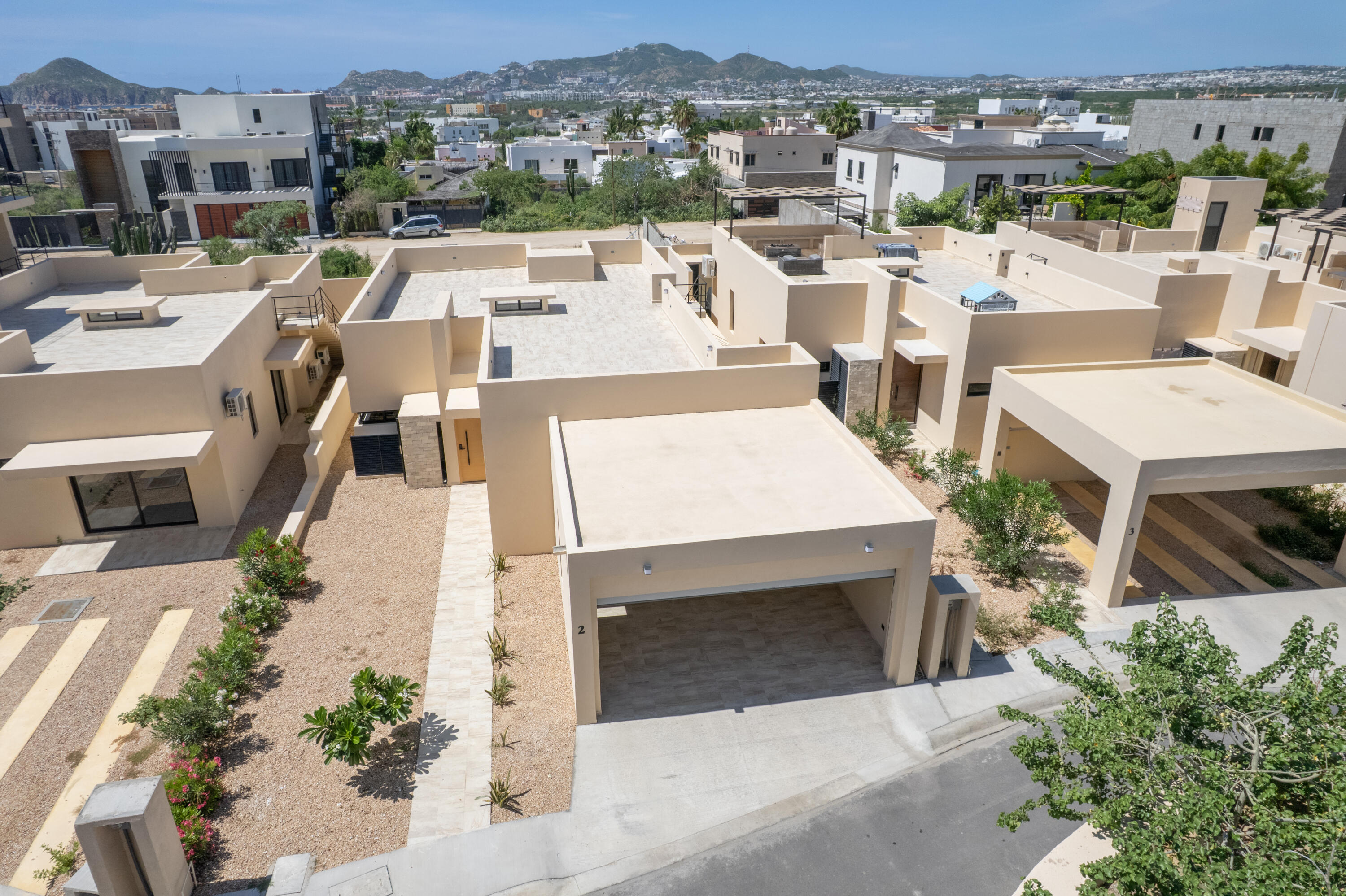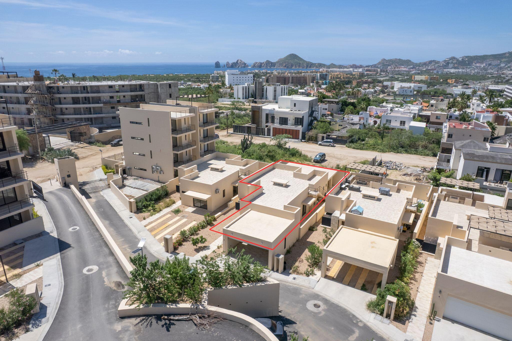 Brand New ENTERTAINER’S DREAM HOME…with a HUGE outdoor tiled and covered backyard, tiled terrace and a Large tiled Roof top area with ocean and city views. This unique, low-maintenance 3 bedroom home is equipped with whirlpool appliances, laundry area, A/C and a 2 car garage. Enjoy the 3 level Clubhouse equipped with 2 pools, gym, media room, and bar area. All this set in a serene 23 home complex with gated security 24/7. Located in the prime location of El Tezal, near to Costco, Walmart, downtown Marina and Medano beach.