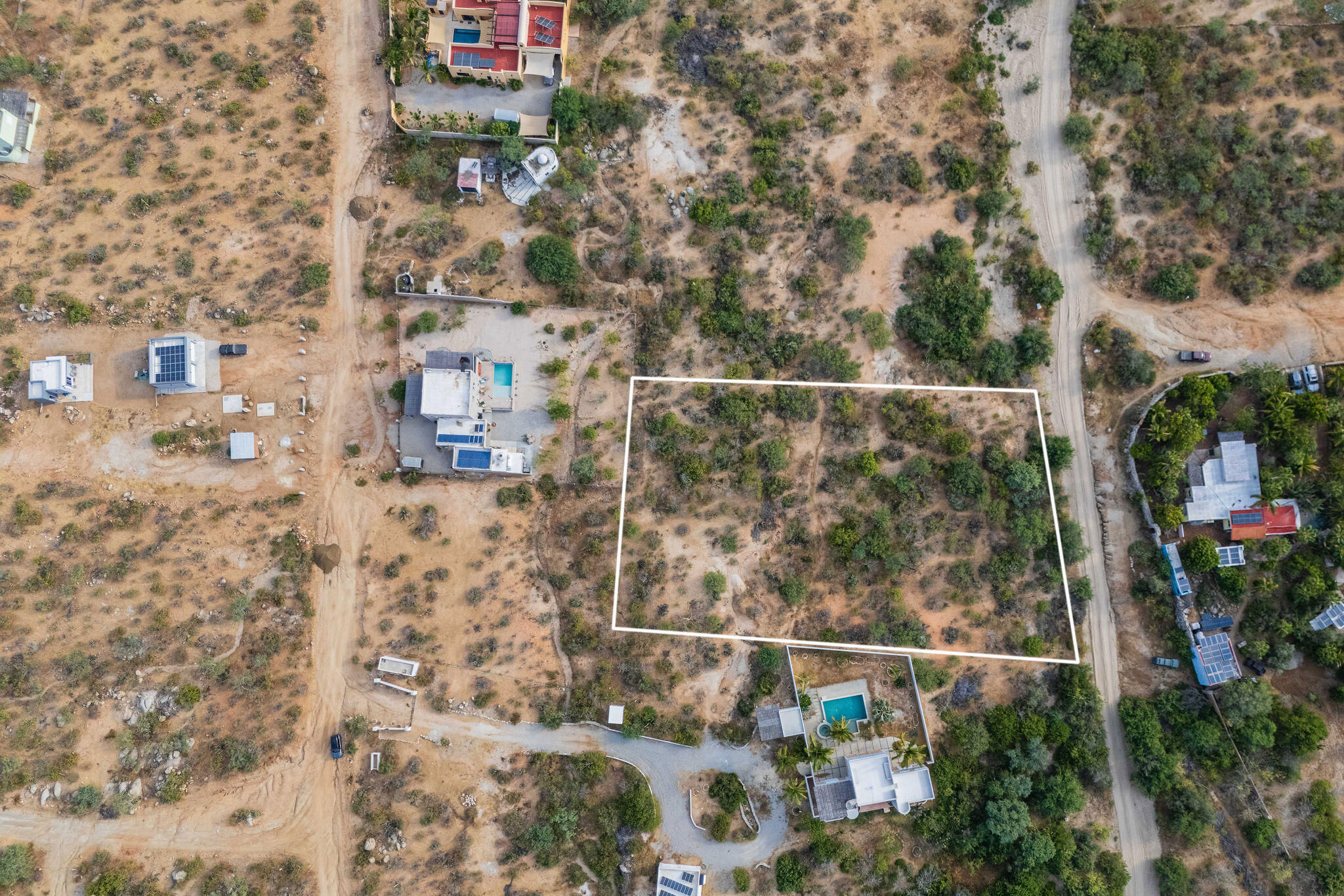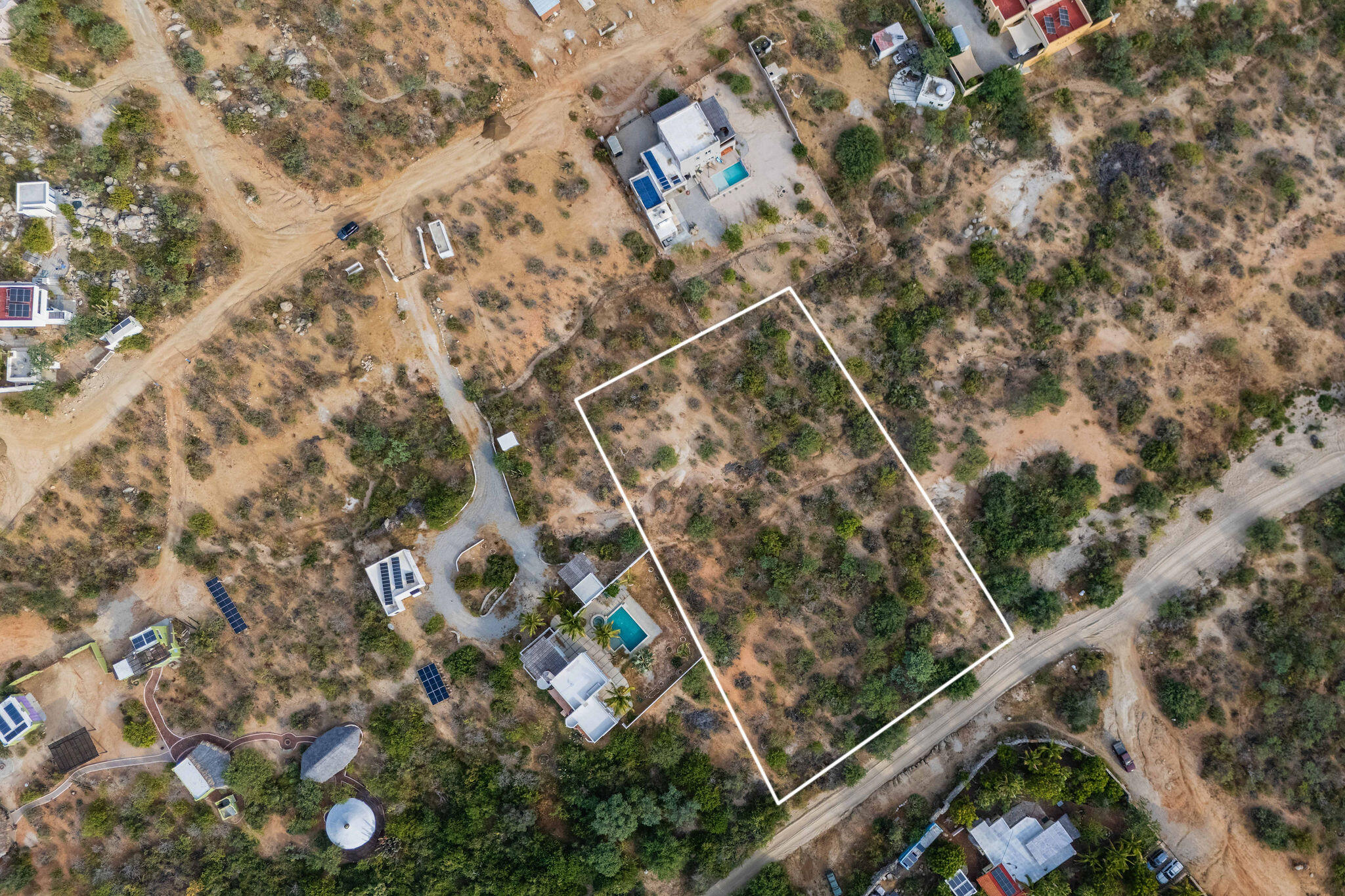 This full one-acre lot offers privacy and a prime location within the neighborhood, tucked away from the main street for added peace and quiet. It’s the perfect setting for a primary residence or a serene vacation home retreat. Enjoy breathtaking mountain sunsets from ground level, with stunning ocean views from a future second story.Under 30 minutes from downtown San Jose, this lot is within walking distance from beautiful beaches, local coffee shop, convenience store, and the famous restaurant, Zac’s Bar & Grill. The Zacatitos community offers a stunning stretch of pristine coastline perfect for swimming, diving, surfing, SUP, mountain biking, whale watching, and seasonal turtle hatching, all just a short stroll from your doorstep. Zacatitos also offers 24/7 security at its entrance.